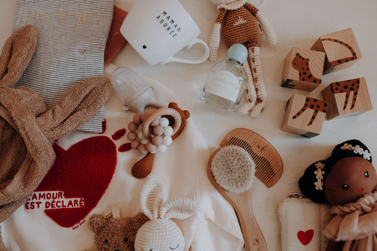 Entrez dans une parenthèse douce et sincère, pensée pour célébrer les premiers instants de vie. Des matières réconfortantes, des essentiels choisis avec soin, et une sélection d’idées cadeaux pleines de sens pour gâter bébé, accompagner les jeunes mamans et chérir toute la famille. Des attentions qui marquent, des cadeaux qui restent.