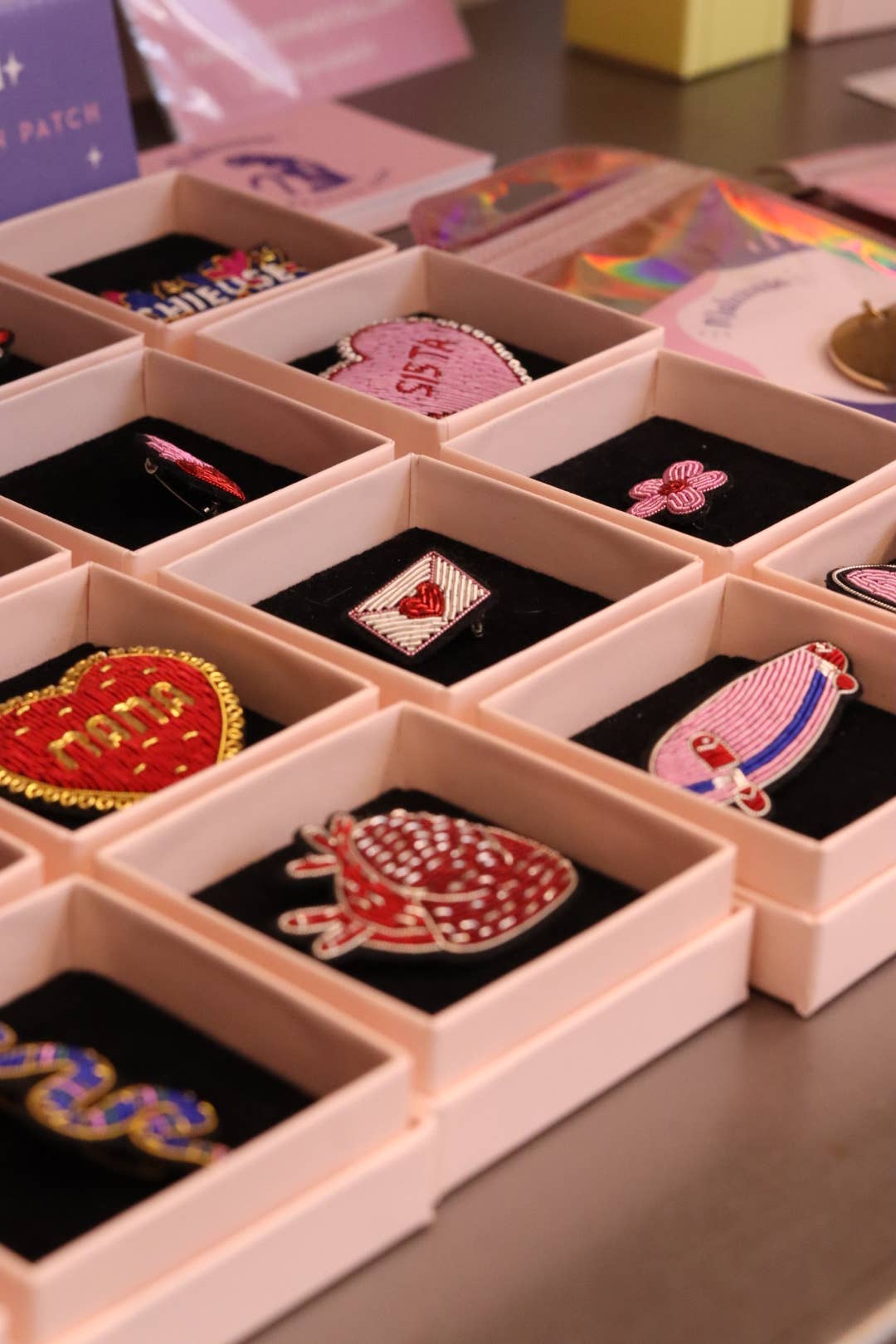 Une précieuse broche Amour entièrement brodée à la main en cannetille, parfait pour votre partenaire de Saint Valentin.