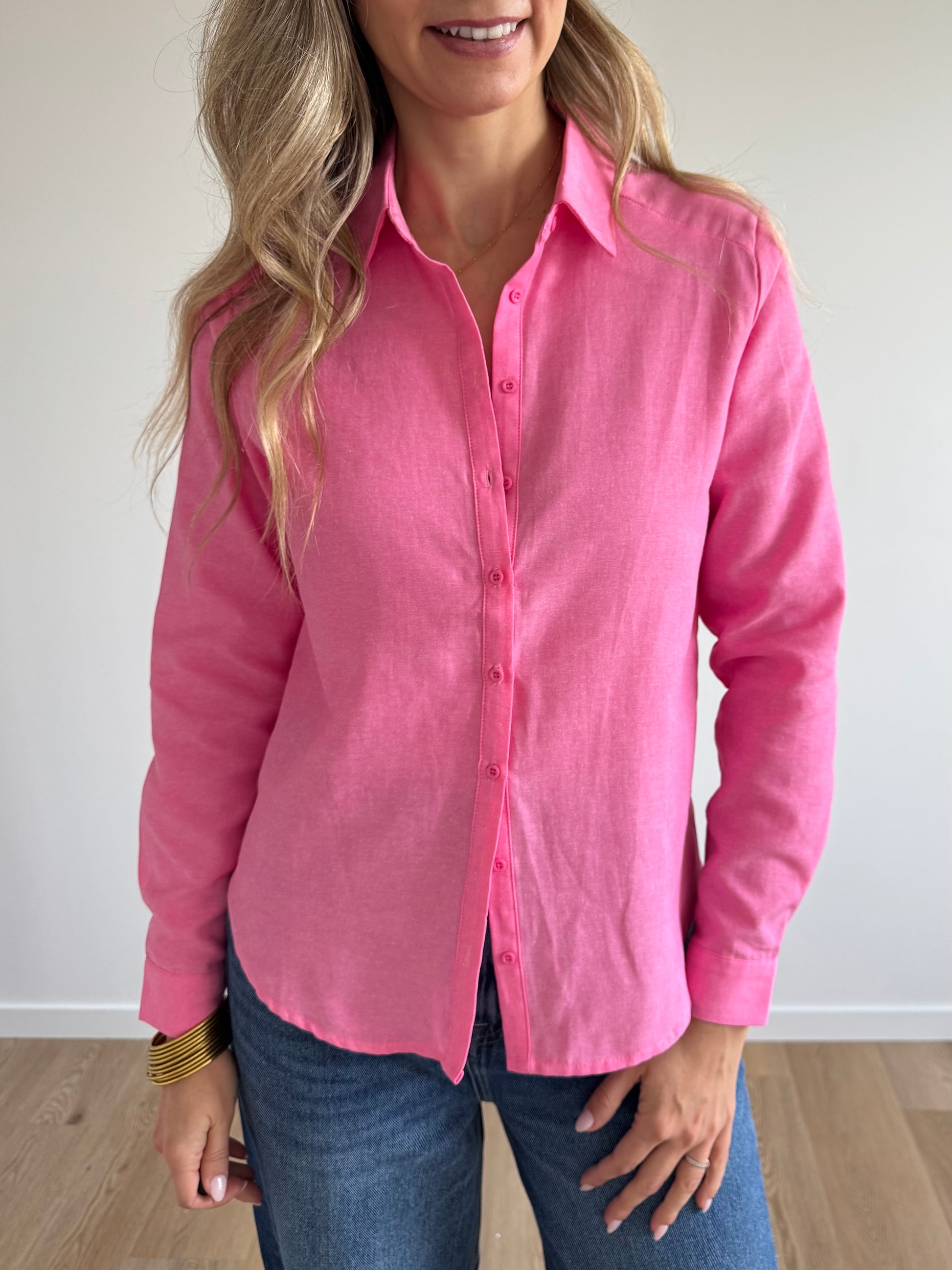 On adore cette chemise rose dégradée en coton mélangé, aussi lumineuse que facile à porter. Sa coupe droite et son col classique dessinent une silhouette élégante, tandis que sa matière douce et légère assure un confort parfait au quotidien. Une pièce coup de cœur à glisser dans tous les looks, du plus casual au plus chic ✨