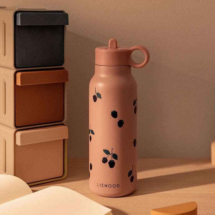 Gourde isotherme Falk Liewood pour enfant, fabriquée en acier inoxydable 18/8 recyclé à 80 %, sans revêtement chimique. Elle maintient les boissons chaudes jusqu’à 6 heures et froides jusqu’à 12 heures. Sa contenance de 350 ml, son embout sport anti-fuite et son anneau de transport en font l’alliée idéale des sorties et du quotidien des petits aventuriers.