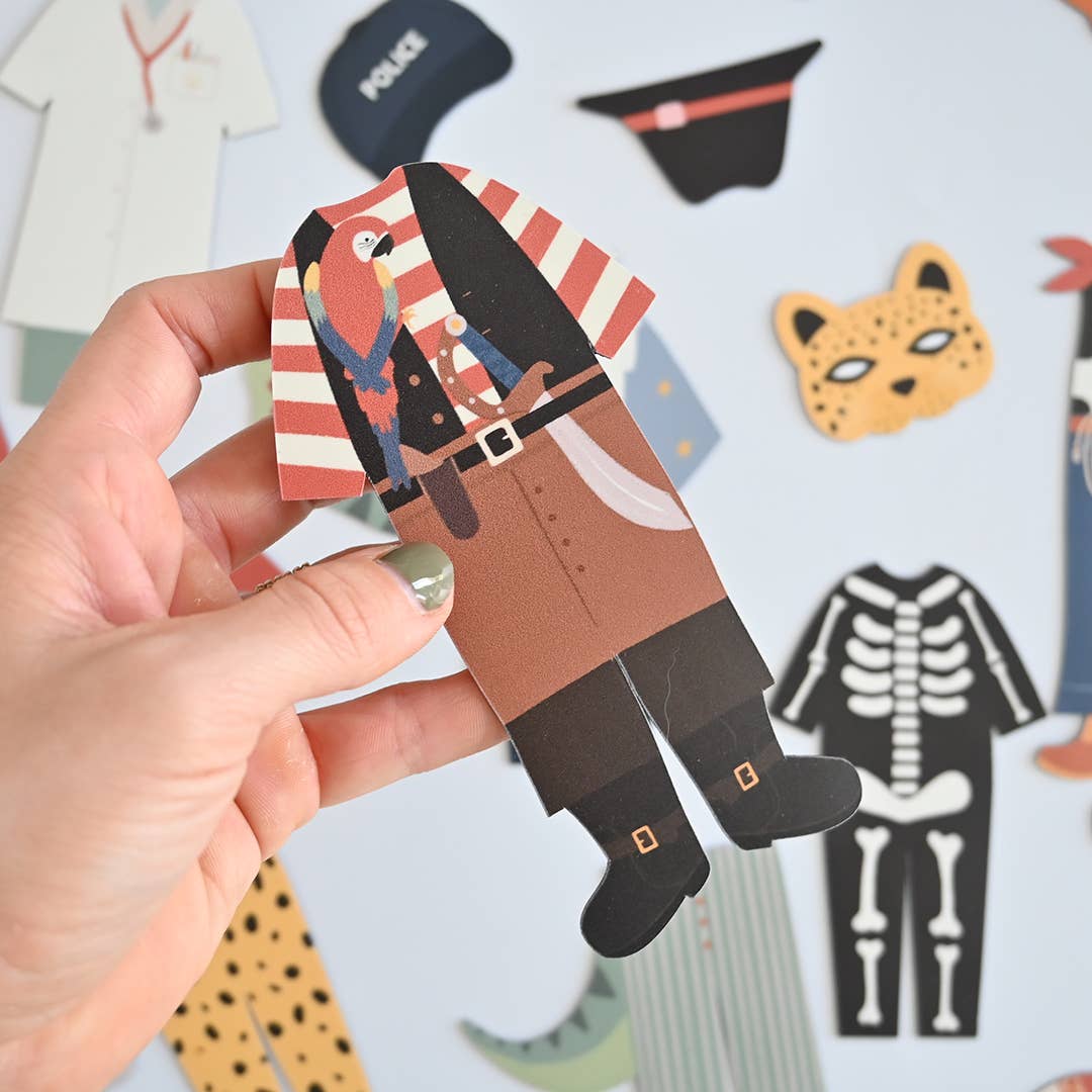 Ce jeu de 12 déguisements à utiliser sur des silhouettes magnétiques permet aux enfants de mélanger et d'associer des magnets pour créer des combinaisons de costumes uniques.