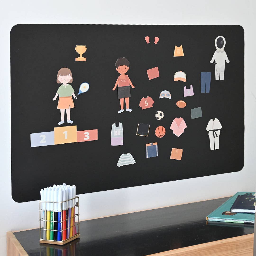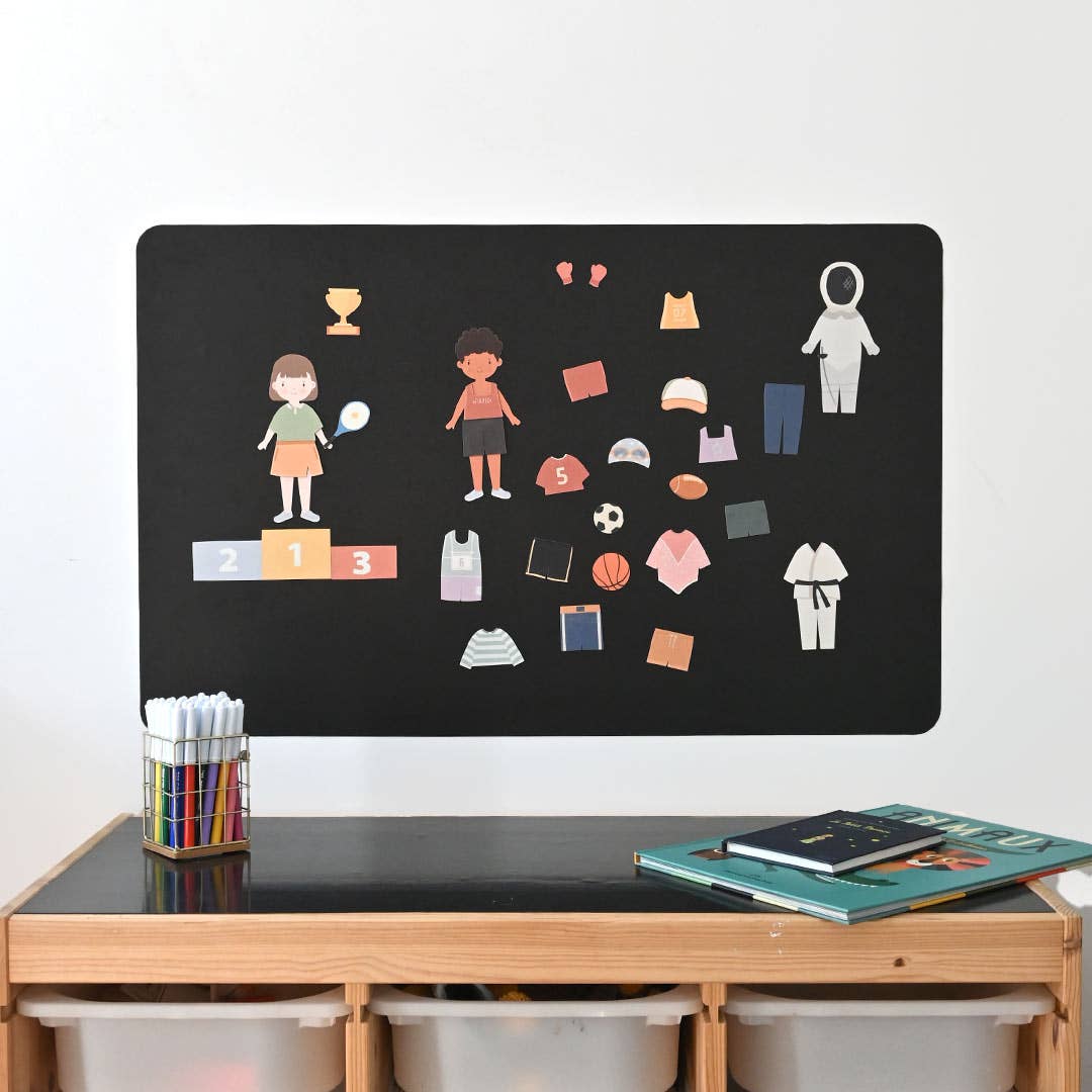 Avec deux silhouettes, une fille et un garçon, les enfants peuvent explorer le monde du sport en habillant leurs personnages avec différentes tenues sportives. Les possibilités de création sont illimitées, ce qui stimule l'imagination et le sens de l'observation des enfants.
