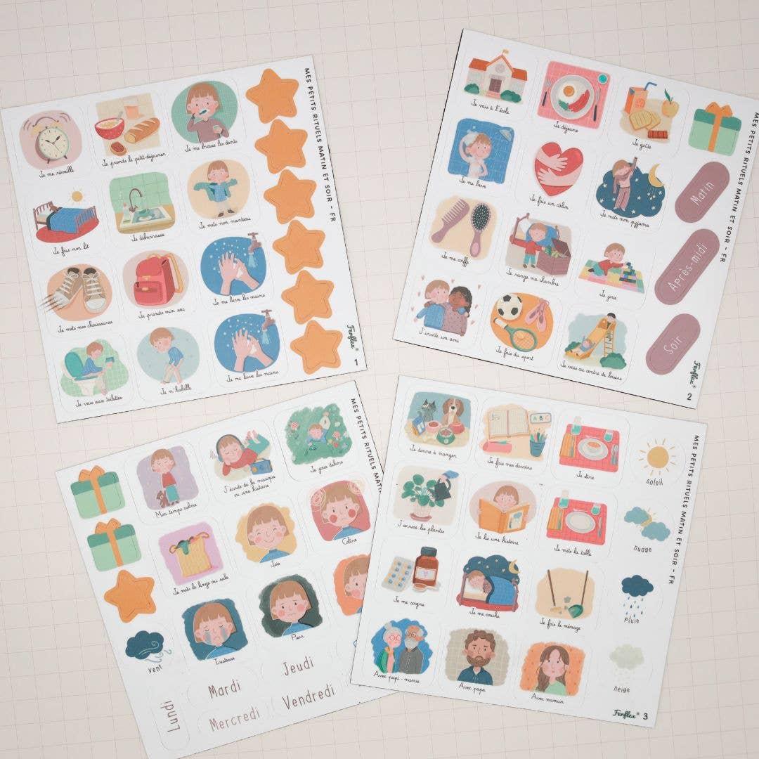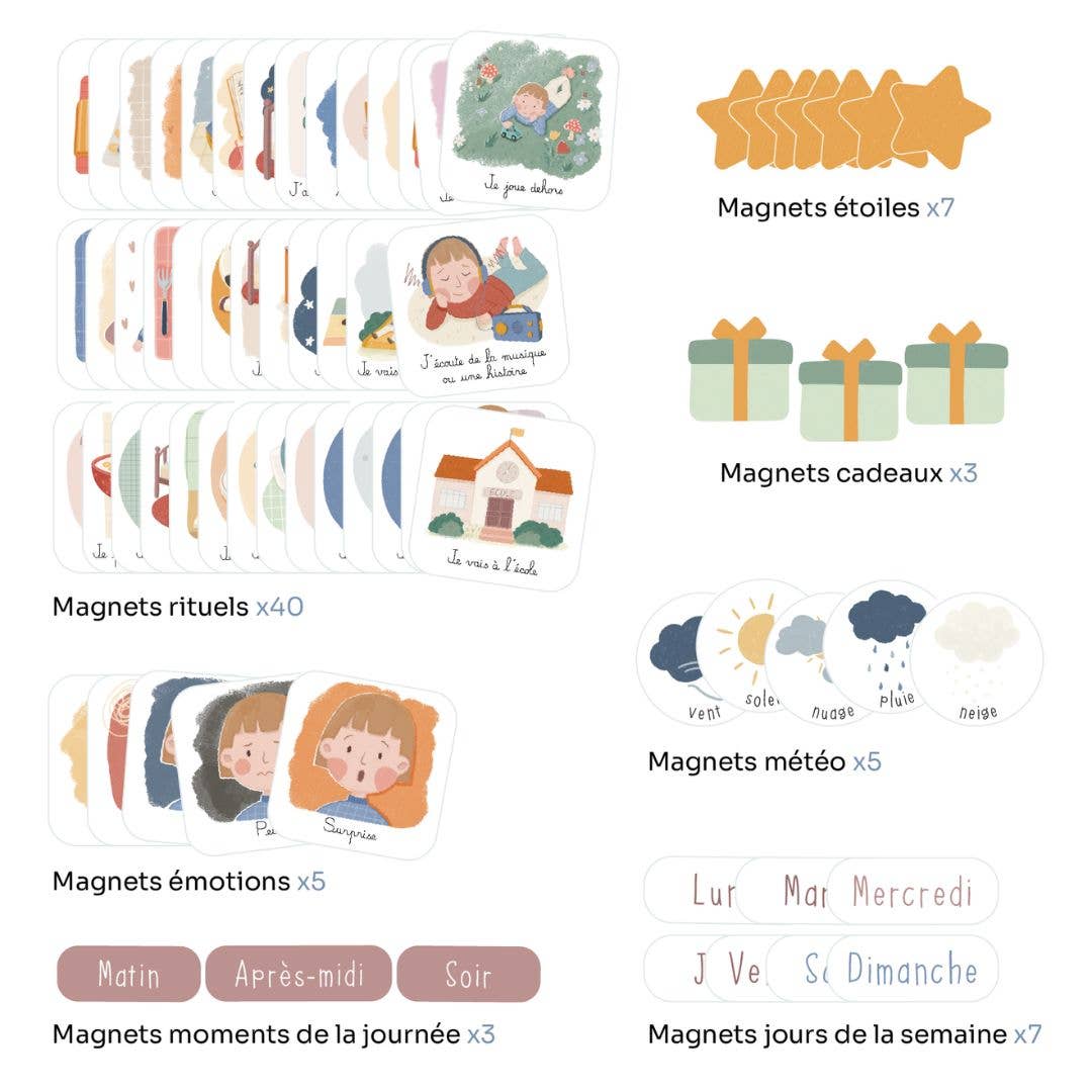 • 40 magnets routines (matin et soir) dont 3 magnets famille : avec maman, avec papa, avec papi/mamie