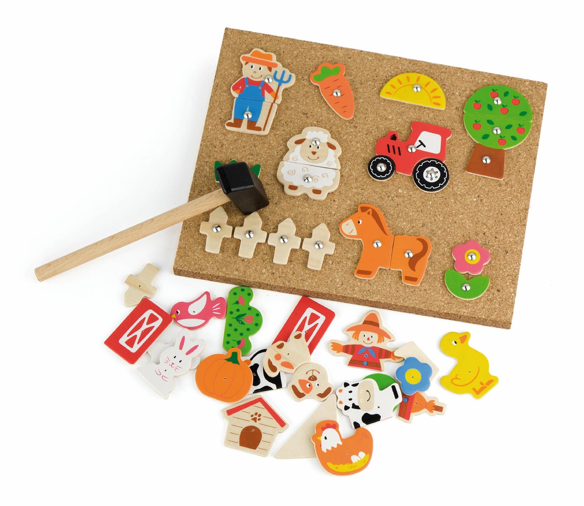 Ce jouet est un excellent moyen d'encourager la créativité et la résolution d'énigmes. Il est livré avec 45 pièces en bois différentes, une planche en liège, un marteau et un paquet de punaises, le tout emballé dans un sac cadeau. 10 photos à réaliser !