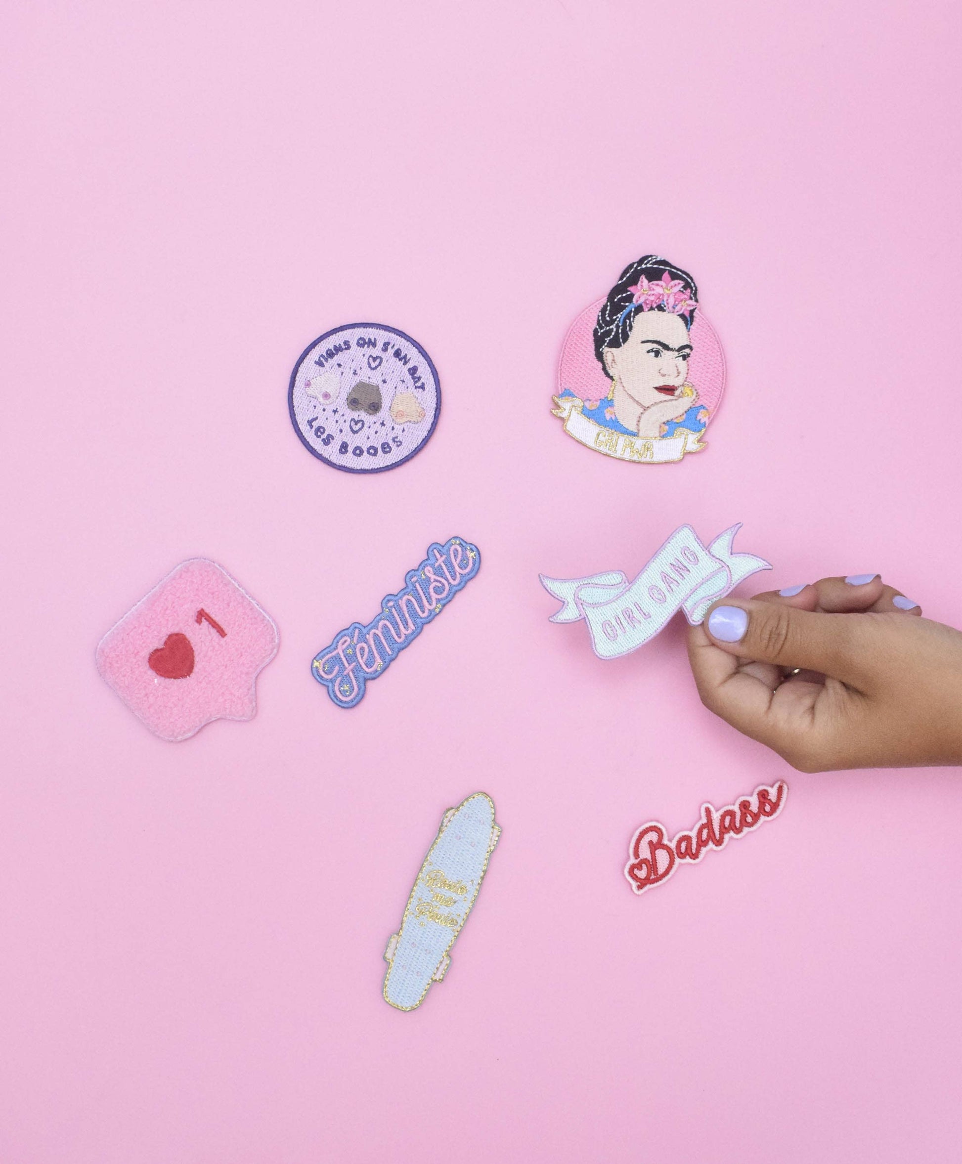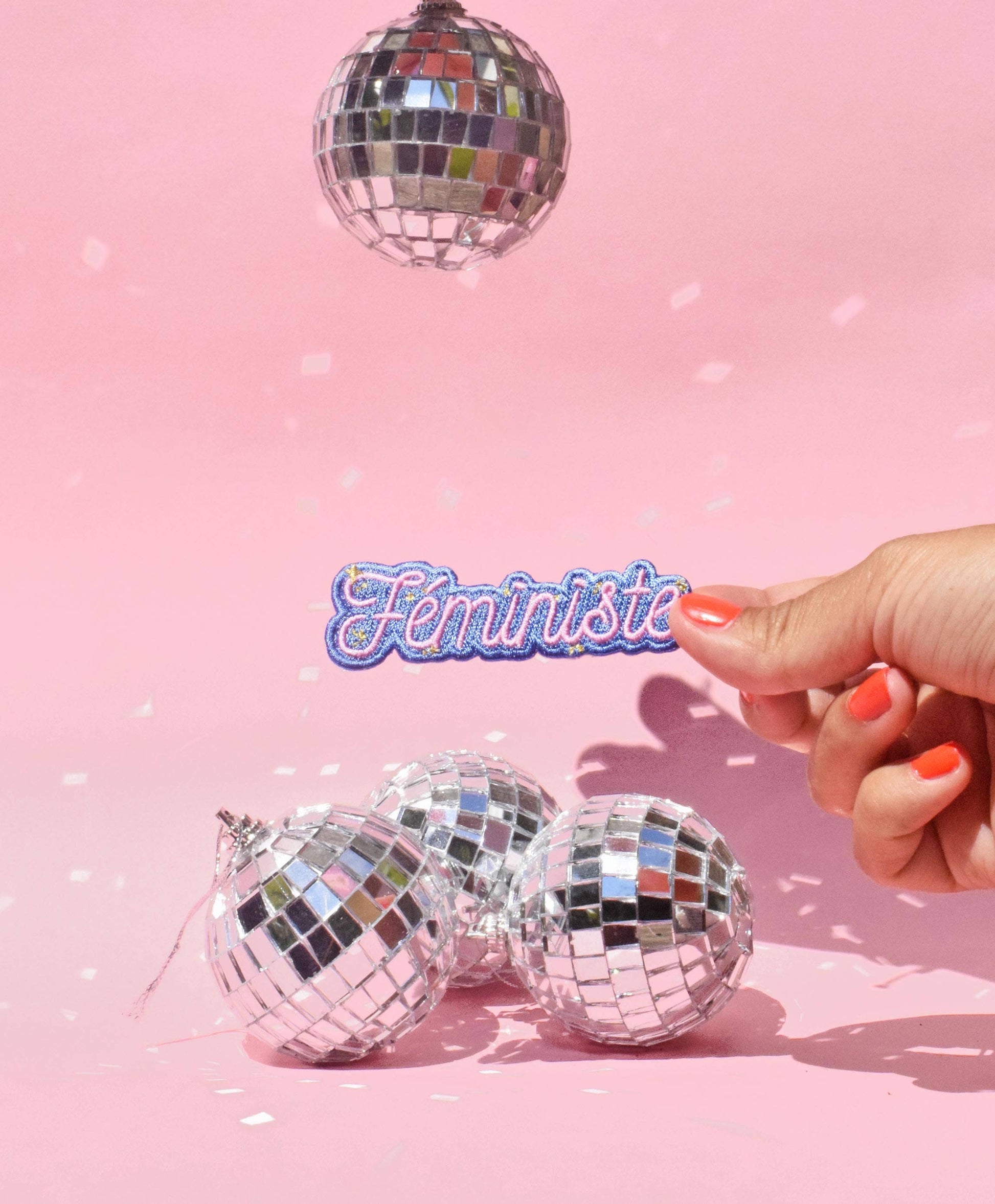 Allez hop, bye bye le patriarcat ! On s'affirme avec cet écusson "Féministe" écriture rose et fond bleu avec ces petites étoiles fils métalliques dorées. Idéal sur un t-shirt basique, ta veste en jeans preferée ou ce que tu voudras puisqu'il se marie avec tout.