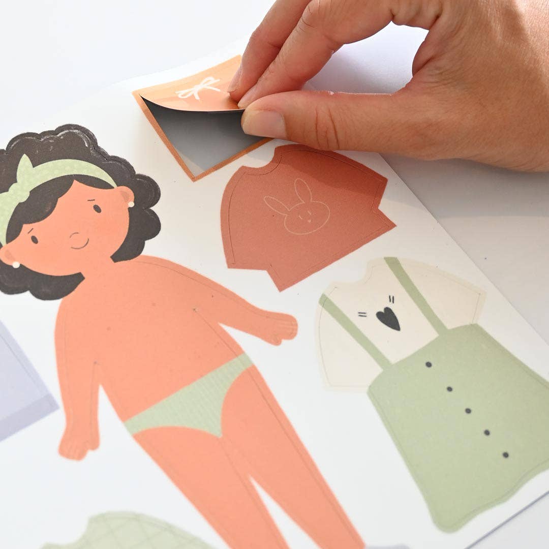 Composer des ensembles en mélangeant les pièces, en les superposant. Le personnage prend vie. Des histoires se racontent et les tenues évoluent au fil des envies ou des saisons.