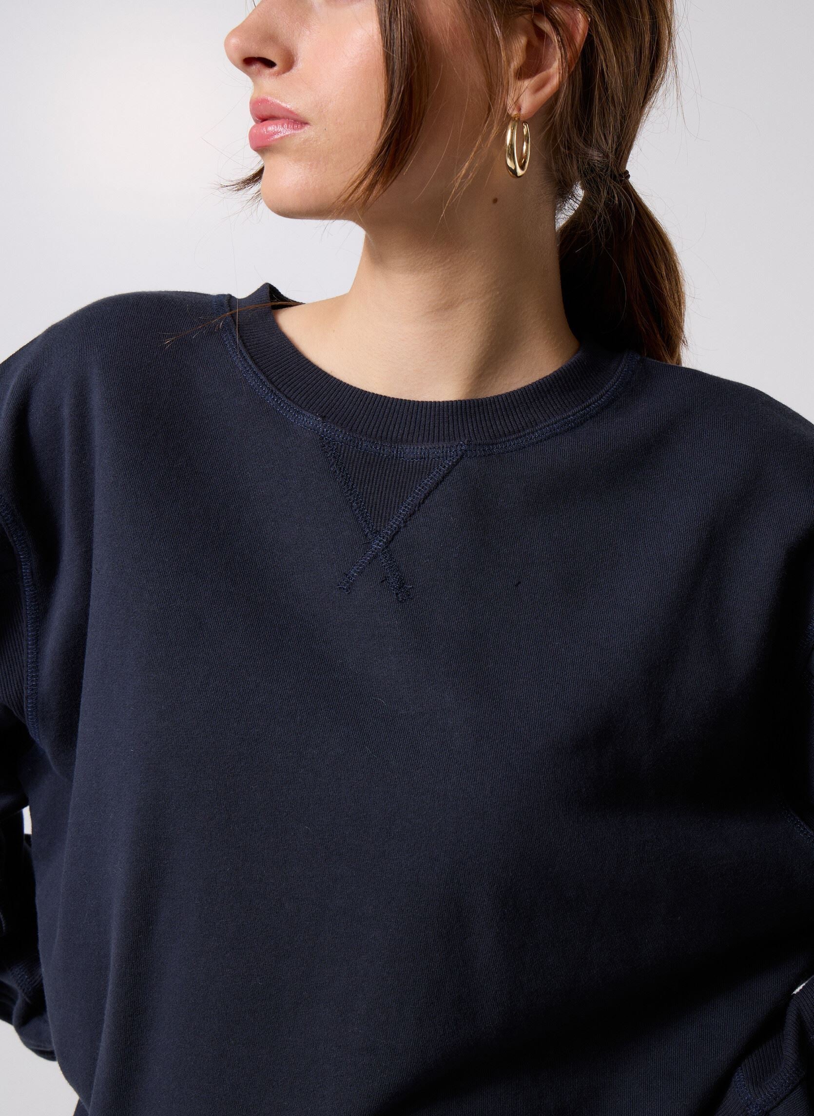 Adoptez un style casual et tendance avec le sweatshirt IHMARDES de la marque Ichi. Conçu en coton majoritaire, il offre un confort optimal grâce à sa coupe agréable et ses manches longues. Son col rond et son coloris marine en font une pièce facile à associer, idéale pour un look du quotidien.