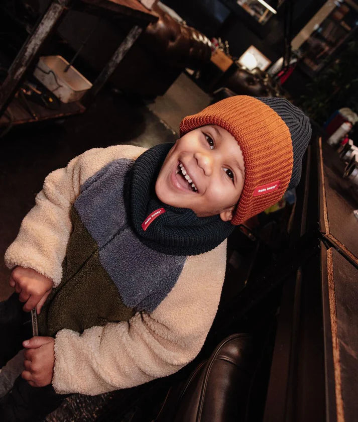 Le Snood pour enfants et bébés, Cocoon Blacky, est un essentiel hiver. Doublure polaire, coton biologique, maille côtelée. De 1 à 10 ans, pour affronter les journées frisquettes en ville, à la mer ou à la montagne. À porter partout, tout le temps.